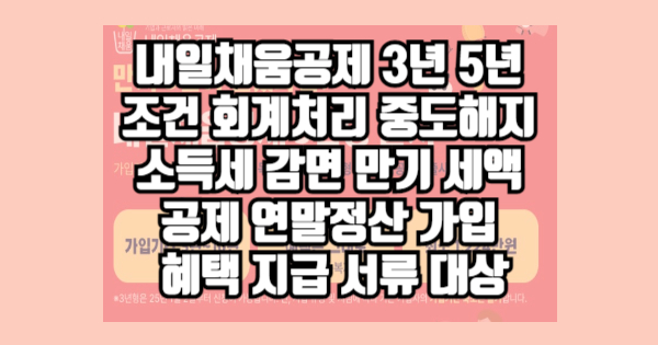 내일채움공제 3년 5년 조건 중도해지 소득세 감면 만기 세액공제 연말정산 가입 혜택 지급 서류 대상