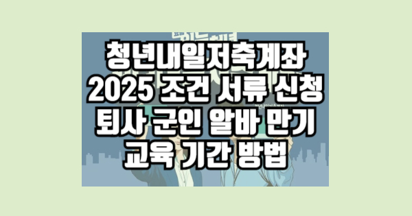 청년내일저축계좌는 저소득 청년의 자산 형성을 지원하는 대표적인 정부 사업입니다. 2025년 기준 조건, 신청 방법, 필요 서류, 만기 수령, 교육, 그리고 알바·군인·퇴사자 관련 내용을 정리합니다.