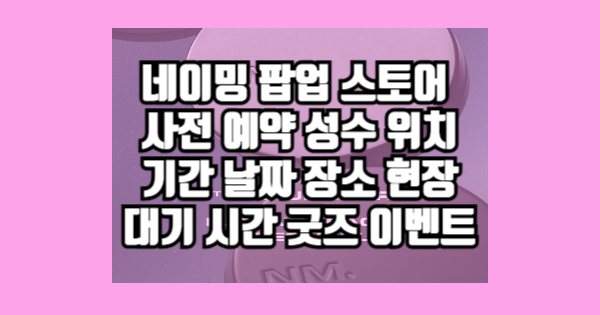 네이밍 팝업 스토어 사전 예약 성수 위치 기간 날짜 장소 현장 대기 시간 굿즈 이벤트를 공유하겠습니다. 이 포스트를 전체적으로 읽고 나면 네이밍 팝업 스토어 사전 예약 성수 위치 기간 날짜 장소 현장 대기 시간 굿즈 이벤트를 알게 될 것입니다. 네이밍 팝업 스토어 사전 예약 성수 위치 기간 날짜 장소 현장 대기 시간 굿즈 이벤트가 궁금하시다면 끝까지 읽어주세요. 이제 아래에서 모두 공유해드리겠습니다.