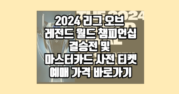 ✅ 2024 월드 챔피언십 결승전 티켓 예매 바로가기