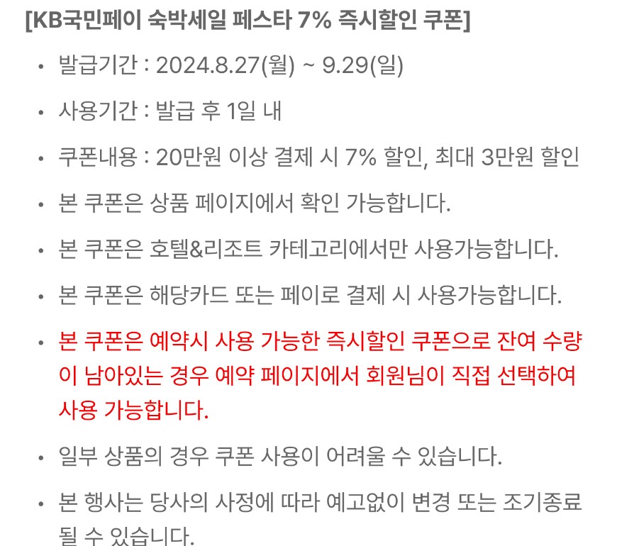 여러분, 이번 기회에 국내 여행 한 번 다녀오는 건 어떨까요? 좋은 숙소에서 휴식도 취하고, 우리나라의 아름다운 구석구석도 둘러보고요. 할인권 놓치지 말고 꼭 챙기세요! 즐거운 여행 되시길 바랄게요~
