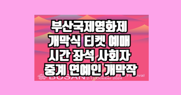 2024년 부산국제영화제는 10월 2일부터 11일까지 열리며, 개막식 티켓 예매는 많은 분들이 기다리는 중요한 순간입니다. 티켓 예매에 대한 자세한 정보입니다.