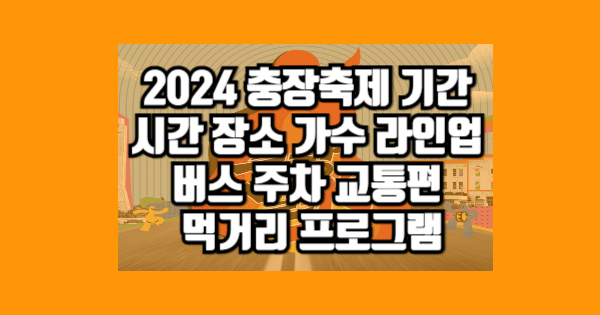 2024 충장축제 기간 시간 장소 가수 라인업 버스 주차 교통편 먹거리 프로그램을 알려드리도록 하겠습니다. 이 글을 읽어주시면 2024 충장축제 기간 시간 장소 가수 라인업 버스 주차 교통편 먹거리 프로그램을 이해할 것입니다. 2024 충장축제 기간 시간 장소 가수 라인업 버스 주차 교통편 먹거리 프로그램의 정보가 필요하시면 끝까지 읽어주세요. 이제 아래에서 2024 충장축제 기간 시간 장소 가수 라인업 버스 주차 교통편 먹거리 프로그램을 알아보도록 합시다.