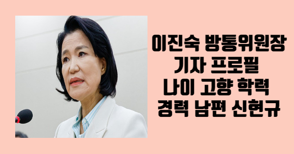 이진숙 방통위원장 기자 프로필 나이 고향 학력 경력 남편 신현규를 전달해보았습니다. 도움이 되었나요? 다른 지식도 필요하시다면 상단의 글들을 참고하시면 도움이 될 것입니다.