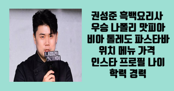 권성준 흑백요리사 우승 인스타 프로필 나폴리 맛피아 비아 톨레도 파스타바 위치 메뉴 가격 나이 학력 경력에 대해 알려드렸습니다. 모두 읽어주셔서 감사합니다. 다른 정보도 궁금하시다면 상단의 글들을 참고하세요.