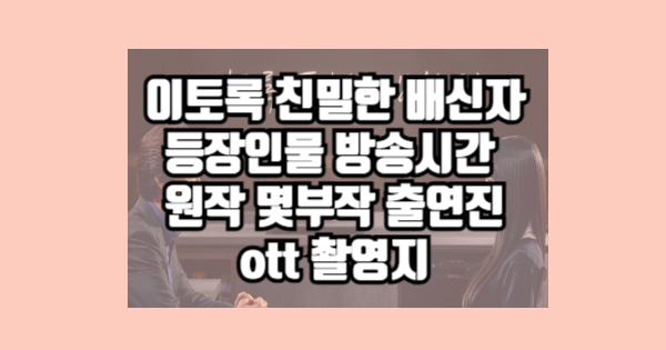 이토록 친밀한 배신자 등장인물 방송시간 원작 몇부작 출연진 ott 촬영지를 전달해보았습니다. 모두 읽어주셔서 감사합니다. 추가적으로 필요하신 정보가 있다면 위의 글들을 참고하시면 됩니다.