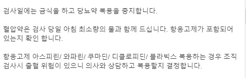 검사 전날 준비 내용