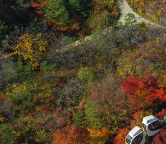 모노레일을 타고 숲을 둘러보며 단풍을 감상할 수 있습니다. 모노레일은 1승강장에서 출발하며, 코스별로 요금이 다릅니다.