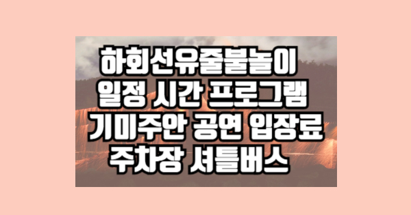 하회선유줄불놀이 일정 시간 프로그램 기미주안 공연 입장료 주차장 셔틀버스 를 알려드렸습니다. 읽어보니 어떠신가요? 추가적으로 필요하신 정보가 있다면 상단의 글들을 참고하시면 도움이 될 것입니다.