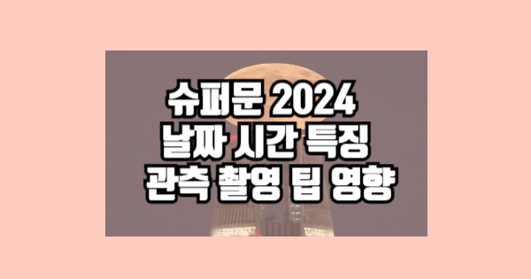 슈퍼문 2024 날짜 시간 특징 관측 촬영 팁 영향을 공유해보았습니다. 모두 읽어주셔서 감사합니다. 다른 정보도 필요하시다면 상단의 글들을 참고하세요.
