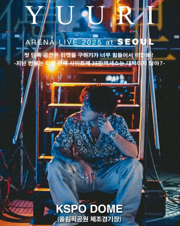 유우리의 '유우리 아레나 라이브 2025 앳 서울(YUURI ARENA LIVE 2025 at SEOUL)' 공연이 2025년 5월 3일과 4일, 이틀간 KSPO DOME에서 열립니다. 이번 공연은 유우리의 두 번째 단독 내한 공연인데요, 특히 일본 솔로 가수가 KSPO DOME에서 공연하는 건 아무로 나미에 이후 무려 21년 만이라고 하네요.