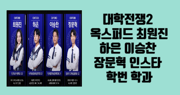 대학전쟁2 옥스퍼드 최원진 하은 이승찬 장문혁 인스타 프로필 나이 학번 학과에 대해 소개해보도록 하겠습니다. 이 문서를 읽어주시면 대학전쟁2 옥스퍼드 최원진 하은 이승찬 장문혁 인스타 프로필 나이 학번 학과를 이해하시게 될 것입니다. 대학전쟁2 옥스퍼드 최원진 하은 이승찬 장문혁 인스타 프로필 나이 학번 학과의 지식이 필요하다면 모두 읽어주세요. 아래에서 모두 공유해드리겠습니다.