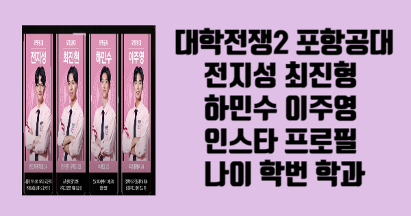 대학전쟁2 포항공대 전지성 최진현 하민수 이주영 인스타 프로필 나이 학번 학과를 소개하겠습니다. 이 포스트를 끝까지 읽으면 대학전쟁2 포항공대 전지성 최진현 하민수 이주영 인스타 프로필 나이 학번 학과를 이해할 것입니다. 대학전쟁2 포항공대 전지성 최진현 하민수 이주영 인스타 프로필 나이 학번 학과의 정보가 필요하면 모두 읽어주세요. 아래에서 공유해드리겠습니다.