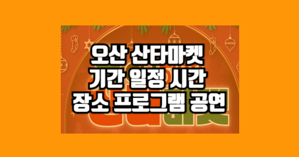 오산 산타마켓 기간 일정 시간 장소 프로그램 공연을 알아보겠습니다. 이 포스트를 끝까지 읽으면 오산 산타마켓 기간 일정 시간 장소 프로그램 공연을 알게 될 것이라고 기대하고 있습니다. 오산 산타마켓 기간 일정 시간 장소 프로그램 공연의 정보가 필요하다면 전체 다 읽어주세요. 아래에서 공유해드리겠습니다.