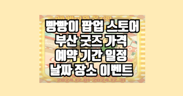 부산에서 열리는 '빵빵이와 옥지의 만물상 IN 부산' 팝업 스토어에 대해 소개해드릴게요. 2024년 12월에 열리는 이 특별한 이벤트, 함께 살펴볼까요?