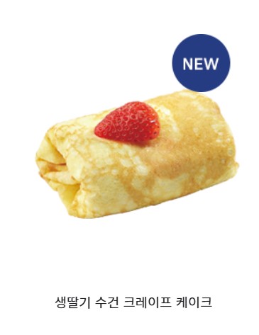 설명: 상큼한 딸기 콤포트와 부드러운 크림을 크레이프지에 정성스럽게 돌돌 말아 만든 수건 케이크