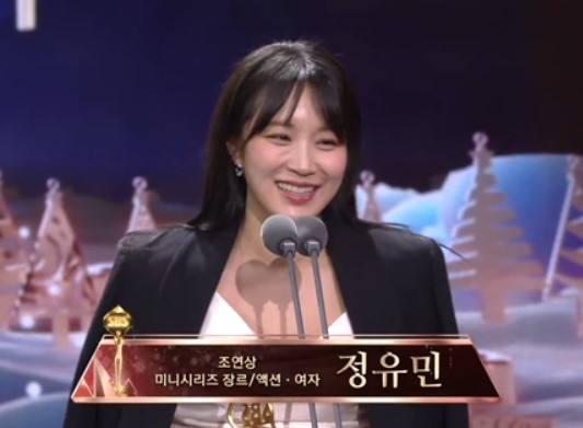 21일 서울 마포구 상암 SBS 프리즘타워에서 열린 시상식에서 정유민 씨는 미니시리즈 장르·액션 여자 부문 조연상을 수상했습니다.