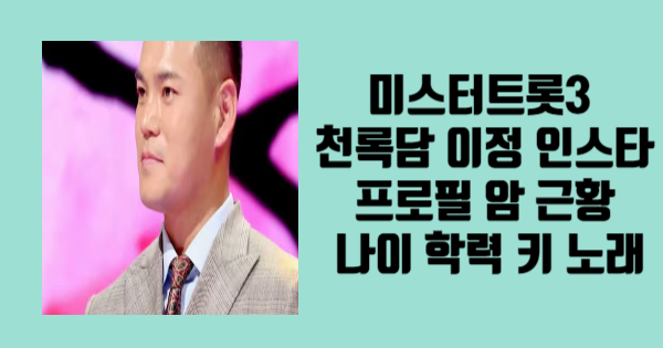 미스터트롯3 천록담 이정 인스타 프로필 암 근황 나이 학력 키 노래 를 알아보았습니다. 읽어보니 어떠신가요? 추가적으로 궁금하신 게 있다면 상단의 글들을 참고하시면 도움이 될 것 같습니다.