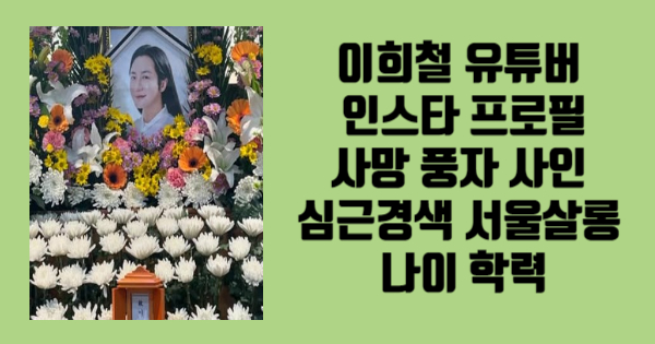 이희철 유튜버 인스타 프로필 사망 풍자 사인 심근경색 서울살롱 나이 학력에 대해 알려드렸습니다. 끝까지 읽어주셔서 감사합니다. 다른 정보도 필요하시다면 위의 글들을 참고하시면 도움이 될 것입니다.