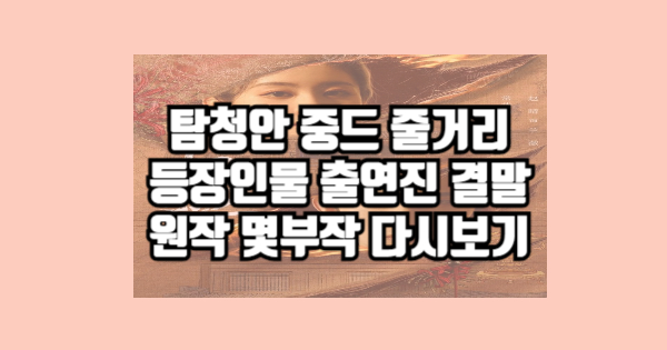 탐청안 중드 줄거리 등장인물 출연진 결말 원작 몇부작 다시보기를 전달해드렸습니다. 도움이 되었나요? 다른 정보도 필요하시다면 상단의 글들을 참고해주세요.