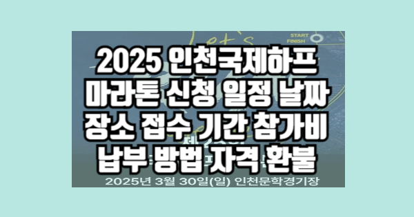 2025 인천국제하프마라톤 신청 일정 날짜 장소 접수 기간 참가비 납부 방법 자격 환불을 알아보았습니다. 어떻게 생각하시나요? 추가적으로 필요하신 정보가 있다면 상단의 글들을 참고하시면 됩니다.
