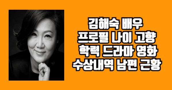 김해숙 배우 프로필 나이 고향 학력 드라마 영화 수상내역 남편 근황 에 대해 알려드리도록 하겠습니다. 이 문서를 끝까지 읽으면 김해숙 배우 프로필 나이 고향 학력 드라마 영화 수상내역 남편 근황 를 이해할 것입니다. 김해숙 배우 프로필 나이 고향 학력 드라마 영화 수상내역 남편 근황 의 정보가 필요하다면 끝까지 읽어주세요. 아래의 문서로 알아봅시다.