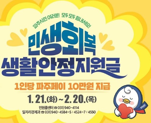 지원 목적: 민생안정 및 지역경제 활성화를 위해 파주시에서 지급하는 지원금입니다.