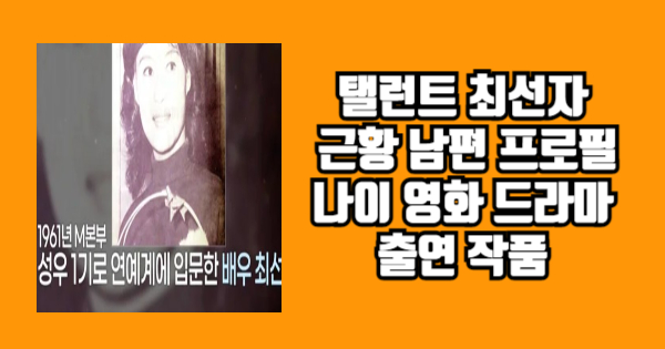 탤런트 최선자 근황 남편 프로필 나이 영화 드라마 출연 작품을 알아보도록 하겠습니다. 이 문서를 끝까지 읽어주신 분들은 탤런트 최선자 근황 남편 프로필 나이 영화 드라마 출연 작품을 알게 되실 것입니다. 탤런트 최선자 근황 남편 프로필 나이 영화 드라마 출연 작품이 궁금하다면 반드시 모두 읽어주세요. 아래에서 공유해드리겠습니다.