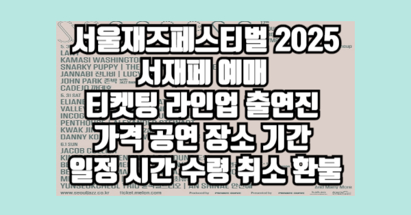 서울재즈페스티벌 2025 서재페 예매 티켓팅 라인업 출연진 가격 공연 장소 기간 일정 시간 수령 취소 환불에 대해서 알아보았습니다. 읽어보니 어떠신가요? 다른 것도 궁금하시다면 위의 글들을 참고하시면 도움이 될 것입니다.