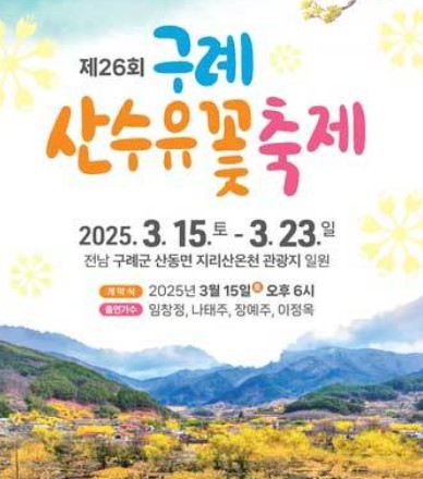 구례 산수유꽃축제 2025 기간 날짜 일정 가수 라인업 프로그램 교통편 셔틀버스