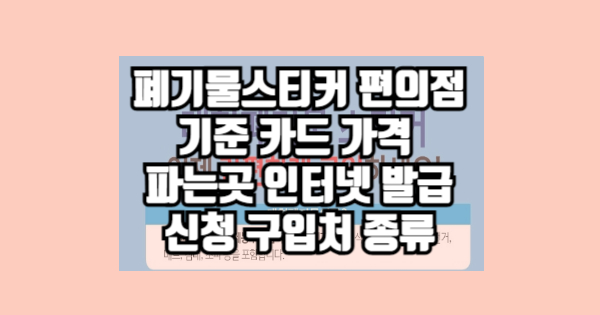폐기물스티커 편의점 기준 카드 가격 파는곳 인터넷 발급 신청 구입처 종류를 공유해드렸습니다. 읽어보니 어떠신가요? 추가적으로 필요하신 정보가 있다면 위의 글들을 참고하십시오.