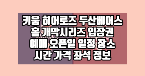 키움 히어로즈 두산베어스 홈 개막시리즈 입장권 예매 오픈일 일정 장소 시간 가격 좌석 정보를 탐구해보도록 하겠습니다. 이 내용을 모두 읽으시면 키움 히어로즈 두산베어스 홈 개막시리즈 입장권 예매 오픈일 일정 장소 시간 가격 좌석 정보를 이해하시게 될 것이라고 기대하고 있습니다. 키움 히어로즈 두산베어스 홈 개막시리즈 입장권 예매 오픈일 일정 장소 시간 가격 좌석 정보가 궁금하다면 끝까지 읽어주세요. 아래에서 모두 공유해드리겠습니다.