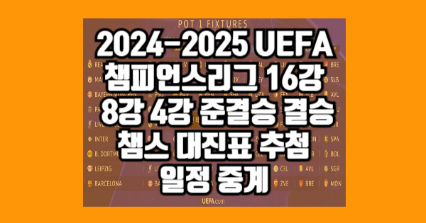 2024-2025 UEFA 챔피언스리그 16강 챔스 대진표 추첨 일정 중계