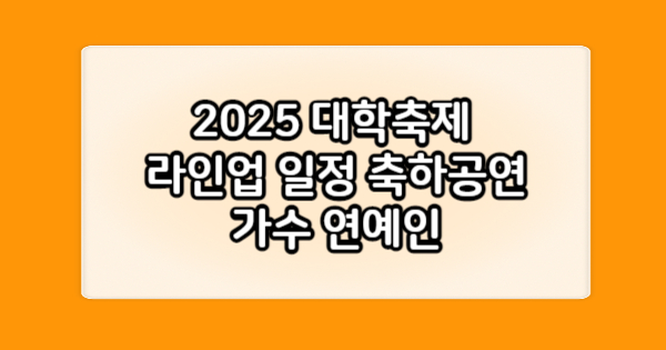2025 대학축제 일정 및 라인업 요약 리스트