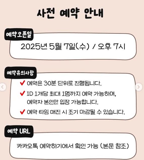 예약: 카카오 사전예약 및 현장 예약, 현장 대기 가능 단 타임별 예약 인원이 먼저 입장합니다.