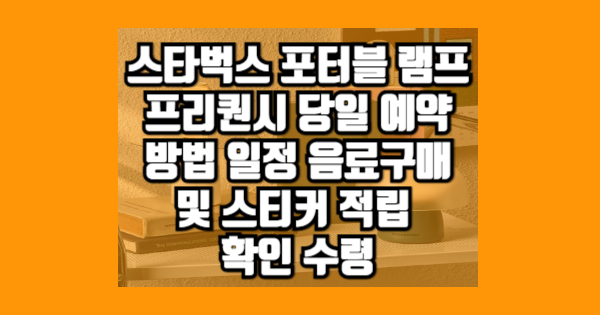 스타벅스의 포터블 램프는 매년 많은 인기를 끌고 있는 아이템 중 하나입니다. 2024년에도 많은 사람들이 이 램프를 손에 넣기 위해 프리퀀시 이벤트에 참여하고 있습니다. 아래는 포터블 램프를 예약하는 방법을 단계별로 정리한 가이드입니다.