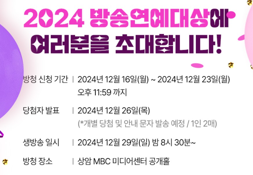 mbc 연기대상 방청 신청 방법 일정 날짜 후보 수상작 mc