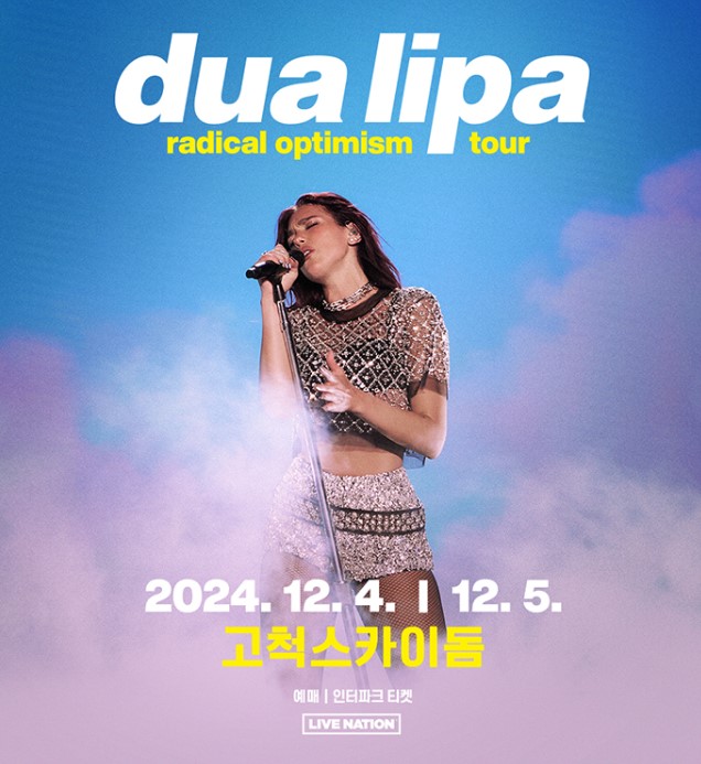 두아 리파는 4일과 5일 오후 8시 서울 구로구 고척스카이돔에서 'Radical Optimism Tour in Seoul' 콘서트를 진행할 예정입니다. 이번 콘서트는 월드투어의 일환이며, 2018년 5월 첫 단독 내한 공연 이후 6년 만에 이루어지는 내한 공연입니다.