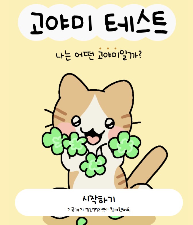 고야미테스트는 고양이와 관련된 다양한 질문을 통해 사용자의 성격 유형을 분석하는 테스트입니다. 이 테스트는 MBTI 성격 유형을 기반으로 하여, 사용자가 어떤 고양이와 가장 잘 맞는지 알려줍니다.