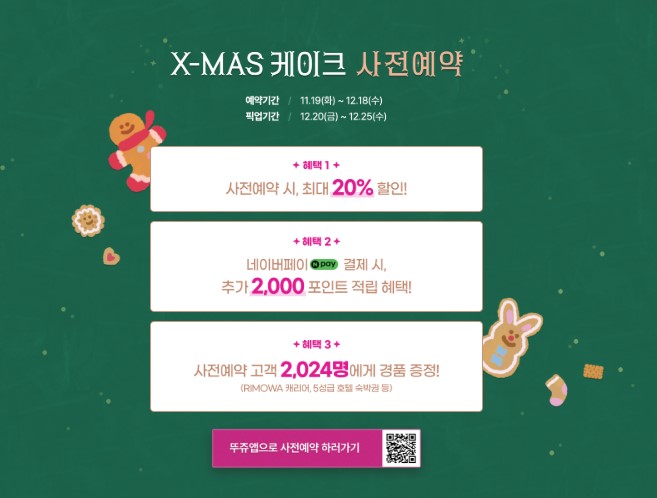 12월 18일까지 뚜레쥬르 앱에서 사전예약 시 최대 8천 원 할인 (네이버페이 결제 혜택 포함)