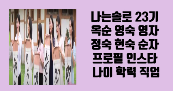 나는솔로 23기 옥순 영숙 영자 정숙 현숙 순자 프로필 인스타 나이 학력 직업에 대해 탐구해보겠습니다. 이 글을 전체적으로 읽으면 나는솔로 23기 옥순 영숙 영자 정숙 현숙 순자 프로필 인스타 나이 학력 직업을 알게 될 겁니다. 나는솔로 23기 옥순 영숙 영자 정숙 현숙 순자 프로필 인스타 나이 학력 직업의 정보가 필요하다면 끝까지 읽어주세요. 이제 아래에서 모두 공유해드리겠습니다.