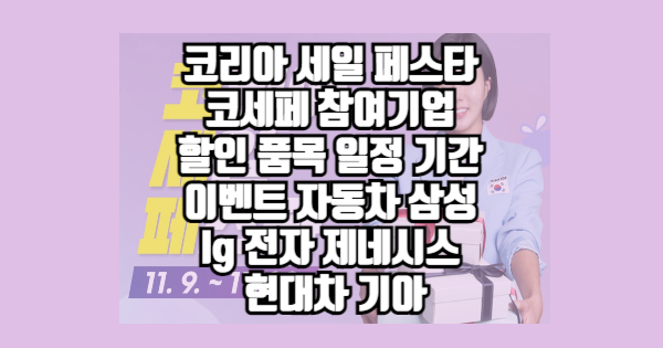 코리아 세일 페스타 참여기업 할인 품목 일정 기간 이벤트 자동차 삼성 lg 전자 제네시스 현대차 기아