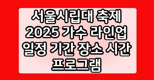 서울시립대 축제 2025 가수 라인업 일정 기간 장소 시간 프로그램에 대해 알려드렸습니다. 어떻게 생각하시나요? 추가적으로 필요하신 정보가 있다면 상단의 글들을 참고하시면 도움이 될 것 같습니다.