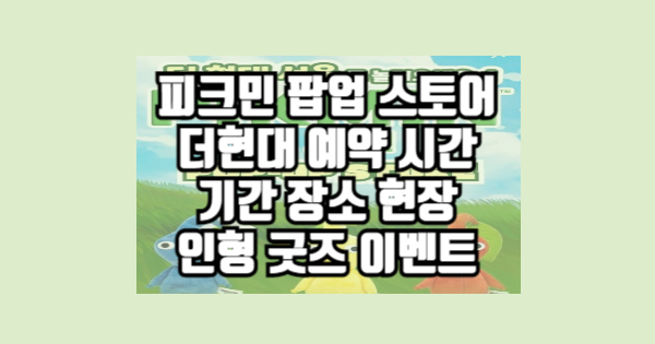 피크민 팝업 스토어 더현대 예약 시간 기간 장소 현장 인형 굿즈 이벤트를 알려드렸습니다. 끝까지 읽어주셔서 감사합니다. 다른 것도 궁금하시다면 상단의 글들을 참고하시면 도움이 될 것 같습니다.