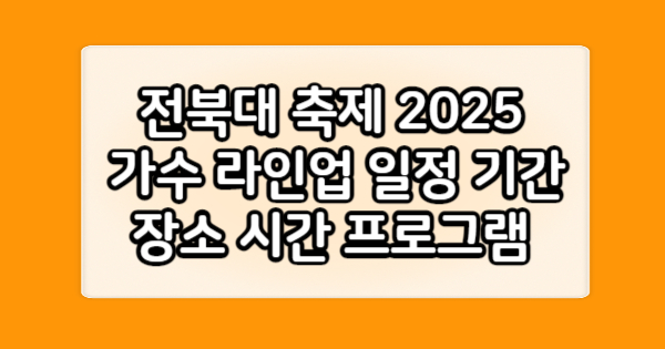 전북대 축제 2025 가수 라인업 일정 기간 장소 시간 프로그램을 알려드렸습니다. 어떻게 생각하시나요? 다른 것도 궁금하시다면 위의 글들을 참고하시면 도움이 될 것입니다.