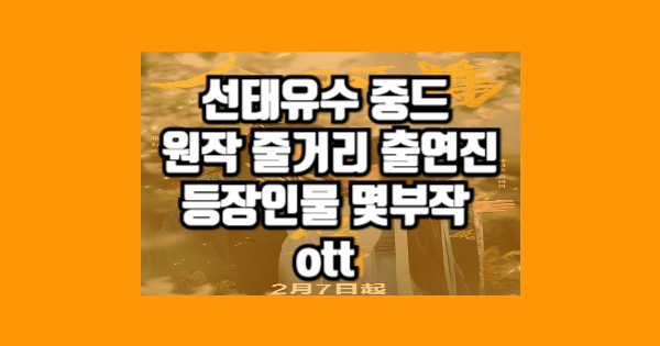 선태유수 중드 원작 줄거리 출연진 등장인물 몇부작 ott를 공유해보았습니다. 도움이 되었나요? 다른 정보도 필요하시다면 위의 글들을 참고하시면 도움됩니다.