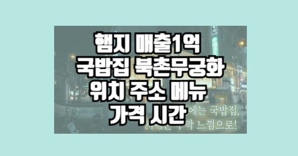 햄지 매출1억 국밥집 북촌무궁화 위치 주소 메뉴 가격 시간