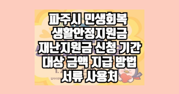 지원 목적: 민생안정 및 지역경제 활성화를 위해 파주시에서 지급하는 지원금입니다.