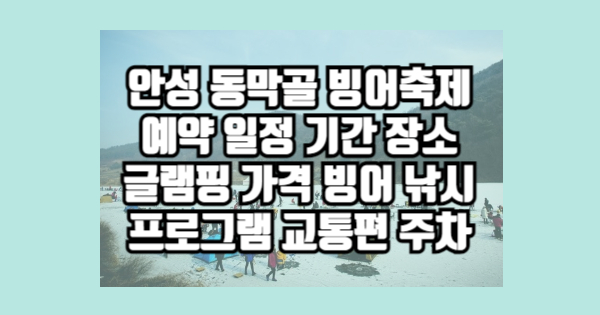안성 동막골 빙어축제 예약 일정 기간 장소 글램핑 가격 빙어 낚시 프로그램 교통편 주차