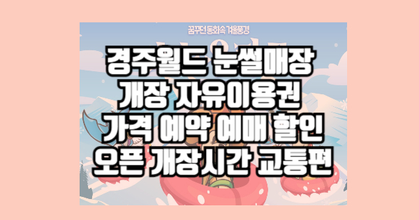경주월드 눈썰매장 개장 자유이용권 가격 예약 예매 할인 오픈 개장시간 교통편을 공유해보았습니다. 읽어보니 어떠신가요? 추가적으로 궁금하신 게 있다면 위의 글들을 참고하십시오.